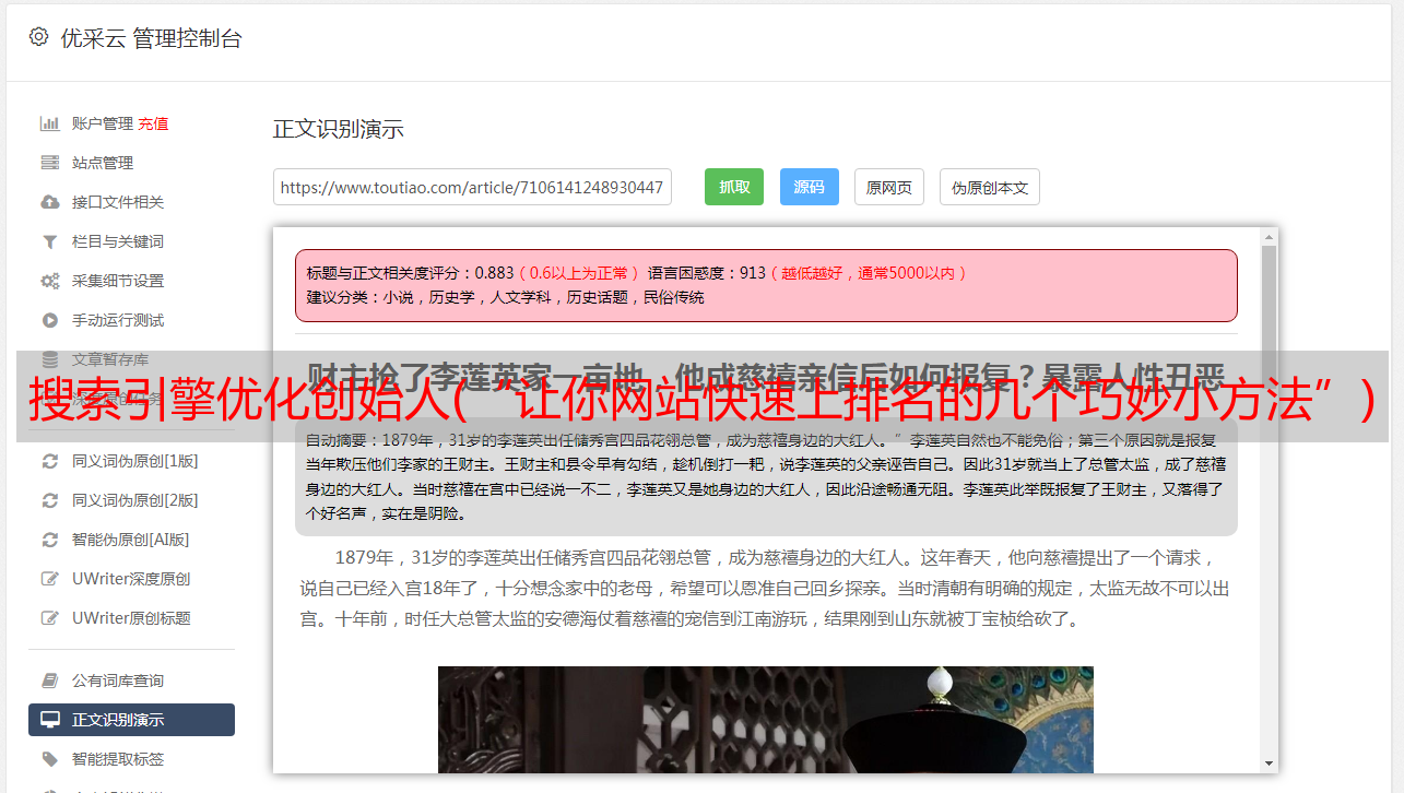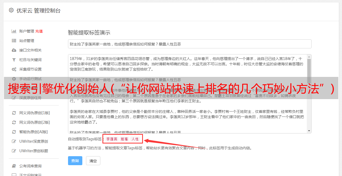 优采云 发布时间: 2022-01-16 14:11搜索引擎优化创始人(“让你网站快速上排名的几个巧妙小方法”)
