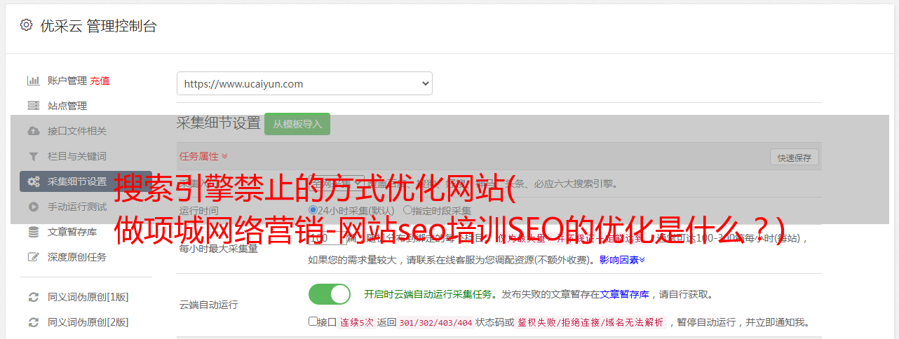 优采云 发布时间: 2022-01-16 16:16搜索引擎禁止的方式优化网站(