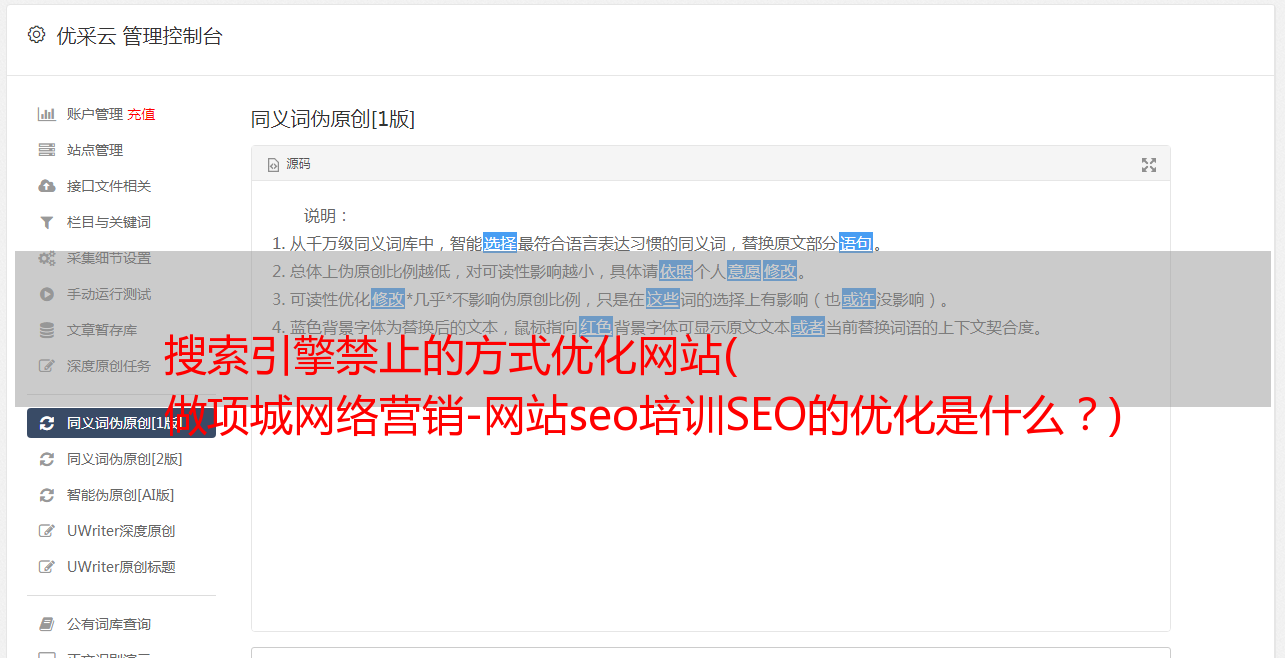 搜索引擎禁止的方式优化网站( 做项城网络营销-网站seo培训SEO的优化是什么?)