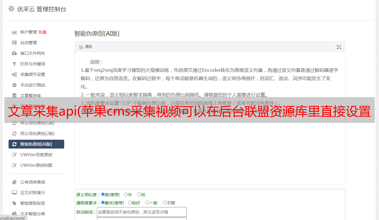 优采云 发布时间: 2022-01-16 18:06文章采集api(苹果cms采集视频可以在后台联盟资源库里直接设置采集)