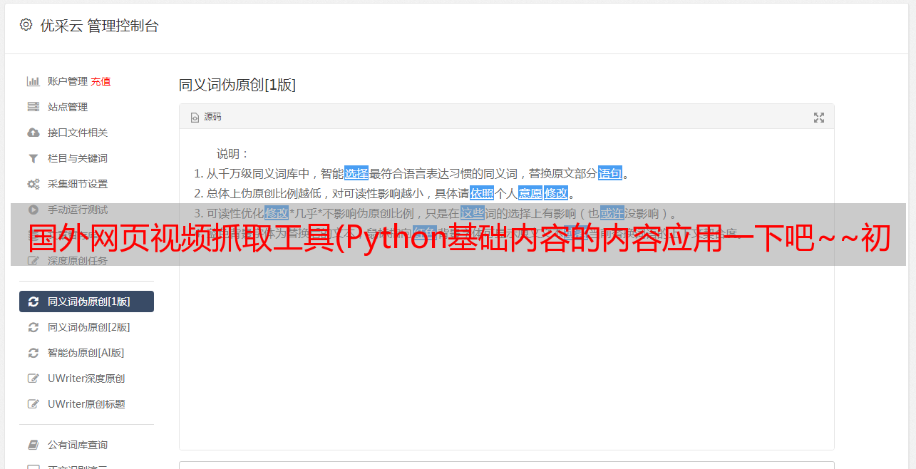优采云 发布时间: 2022-01-16 19:12国外网页视频抓取工具(Python基础内容的内容应用一下吧~~初识爬虫20天学会)