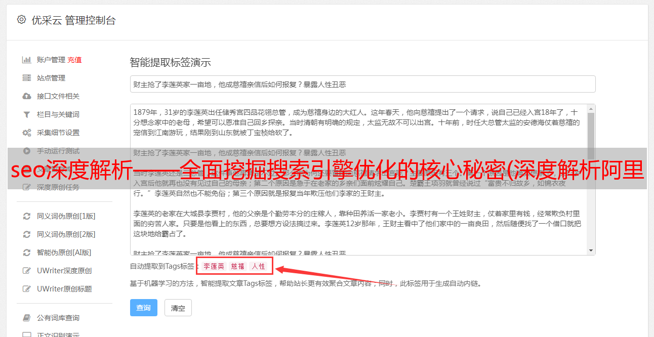 优采云 发布时间: 2022-01-16 22:03seo深度解析——全面挖掘搜索引擎优化的核心秘密(深度解析阿里SEO搜索引擎:今天的课程不从如何做SEO)
