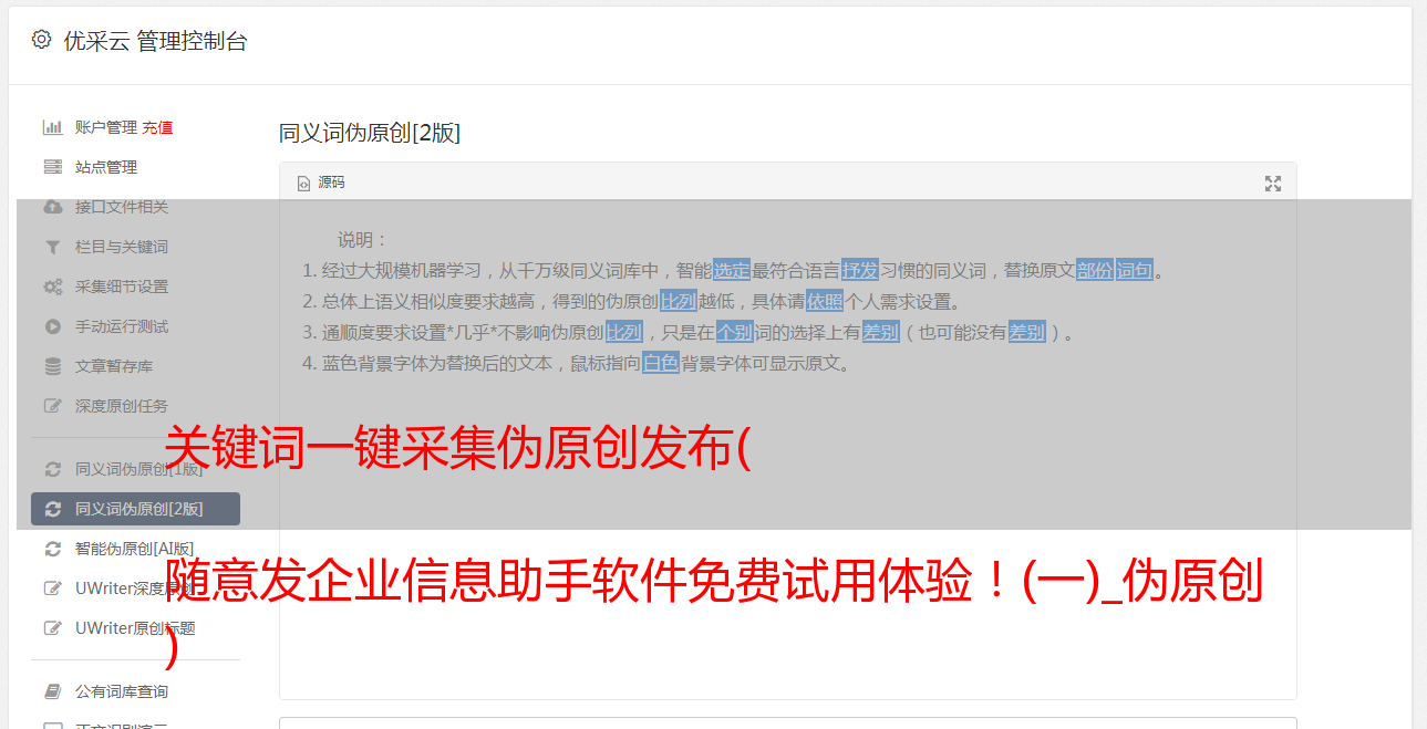 7、 强大的禁词过滤:可以自由指定多个禁词自动过滤或替换,关键词、同义词、词组随意过滤替换,大大提高发布成功率...