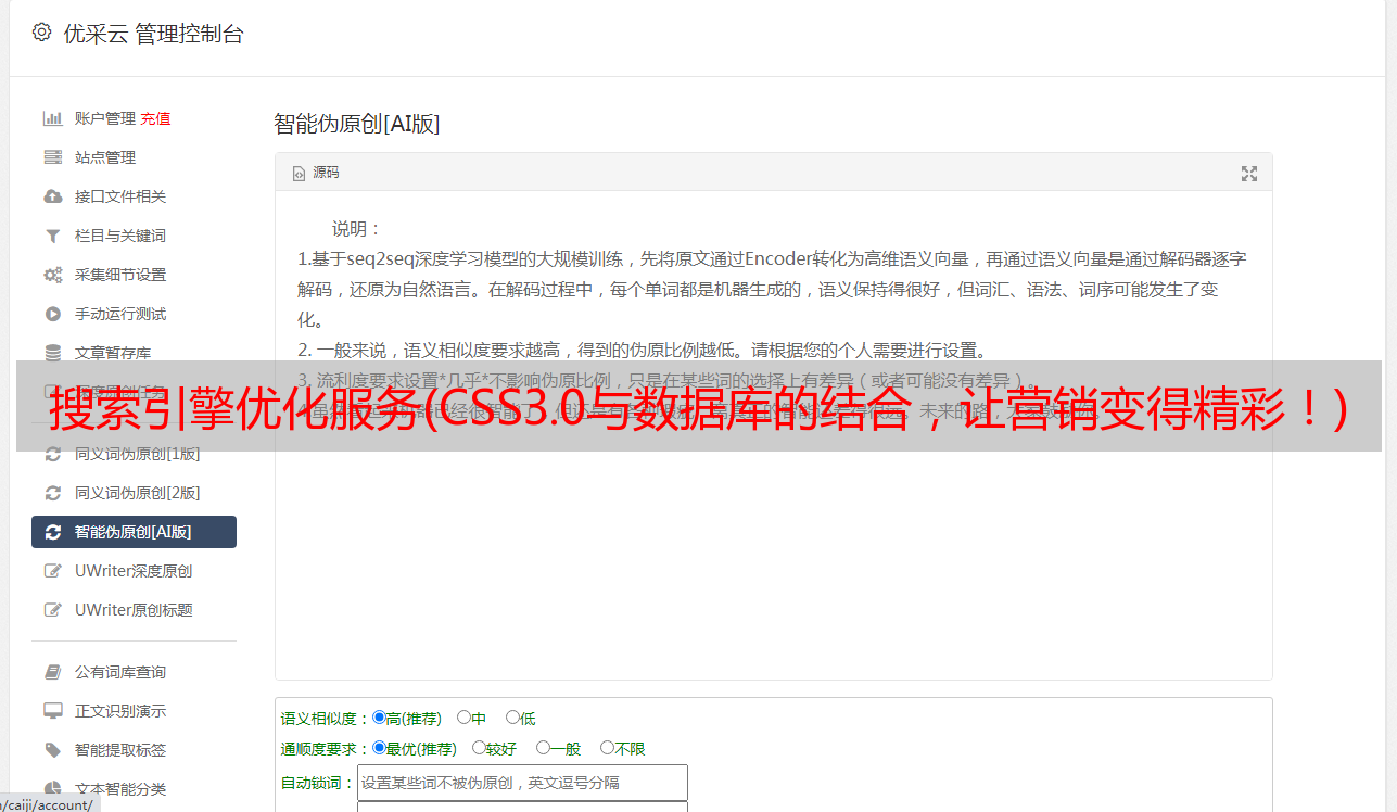 优采云 发布时间: 2022-01-16 23:37搜索引擎优化服务(CSS3.0与数据库的结合,让营销变得精彩!)