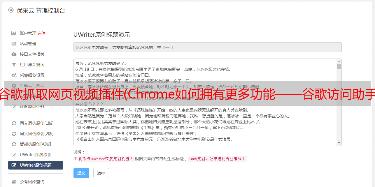 优采云 发布时间: 2022-01-17 00:09谷歌抓取网页视频插件(Chrome如何拥有更*敏*感*词*——谷歌访问助手(组图)