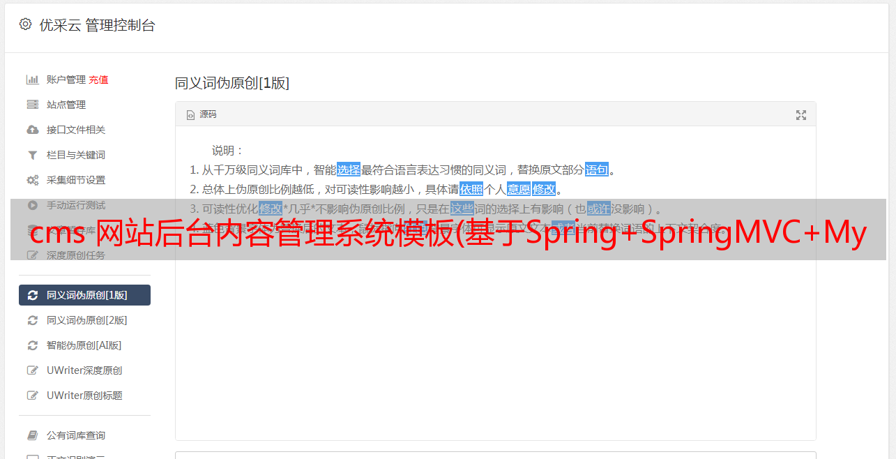优采云 发布时间: 2022-01-17 01:10cms 网站后台内容管理系统模板(基于Spring+SpringMVC+Mybatis分布式敏捷开发系统架构(图))