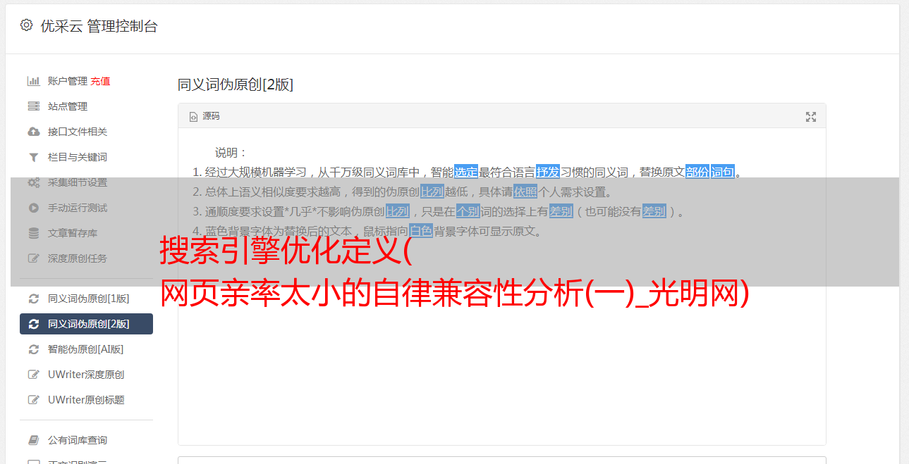 优采云 发布时间: 2022-01-17 02:15搜索引擎优化定义(