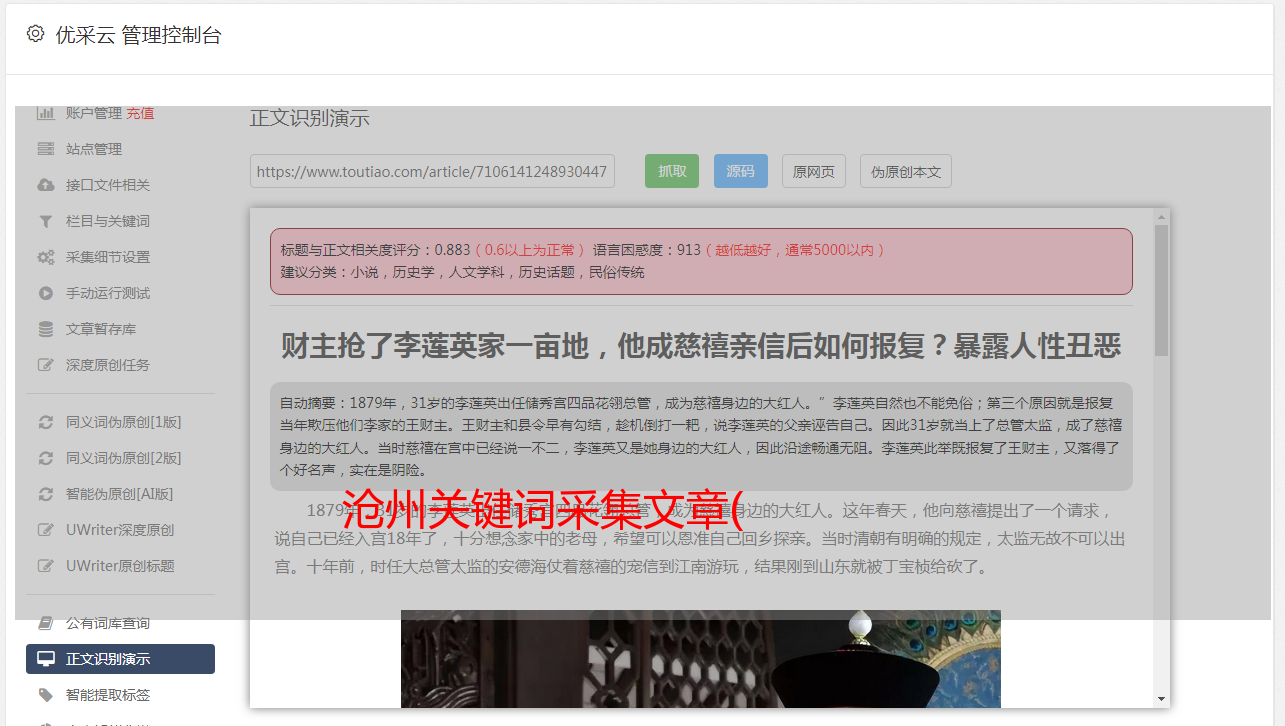 3、网站文章采集所有内容。搜索引擎不喜欢反常的东西。如果你的网站内容来源于其他地方,网站的排名将无法排名,网站百度的采集会采集,但进入后会逐渐下降它。就算以后天天更新****文章也没用,但这不代表不能采集。文章做一些修改,比如替换内容,更改标题等。