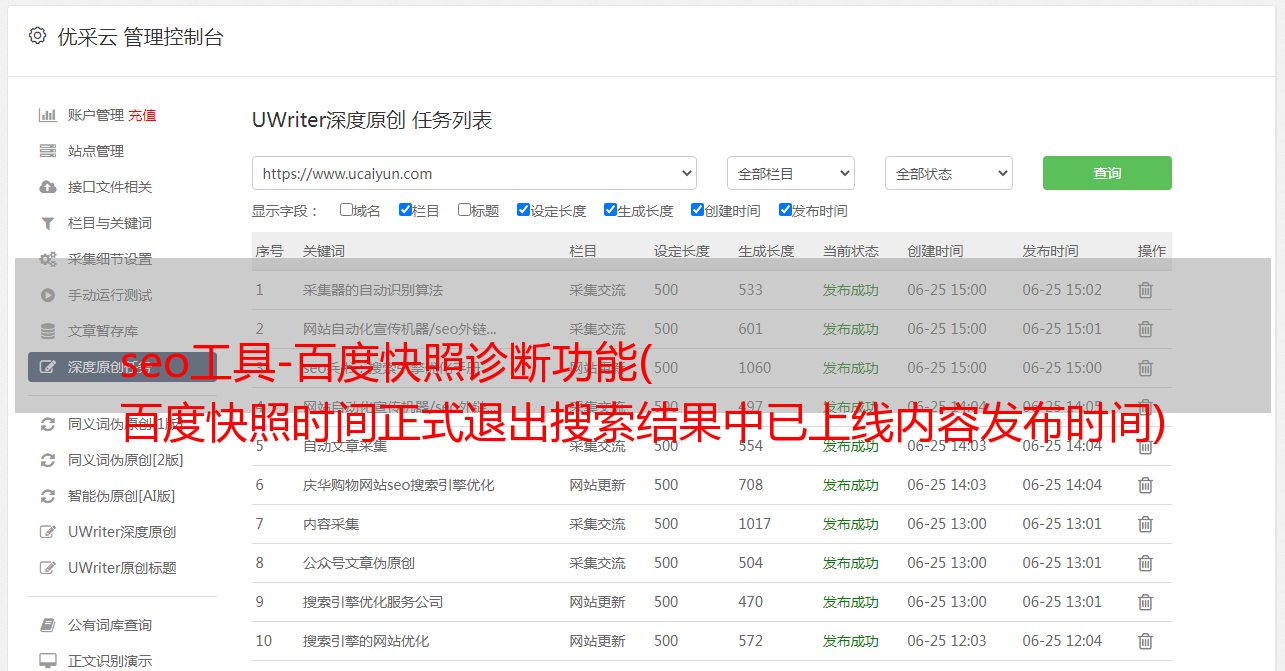 优采云 发布时间: 2022-01-17 04:08seo工具-百度快照诊断功能(