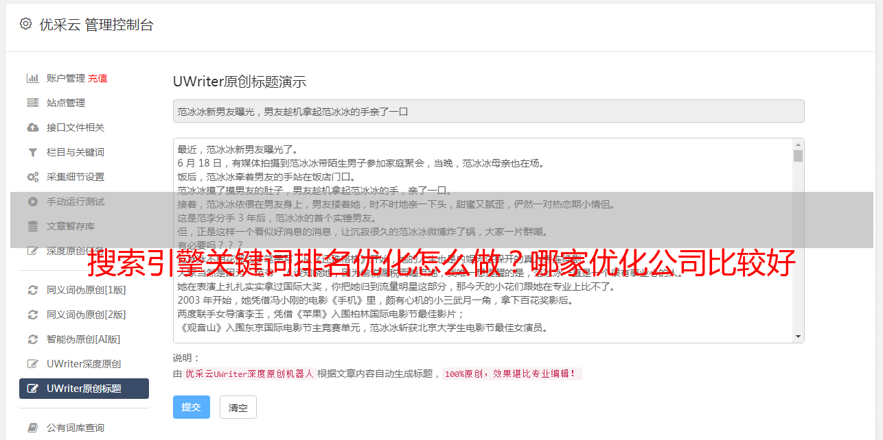 关键词选择后,不是放手,而是向其中注入新鲜血液,最好是用户注意的内容信息点,这些信息点可以吸引用户的观看和粘附。同时,搜索引擎更喜欢原创的内容,并且以原创的高质量内容提高了网站的排名。