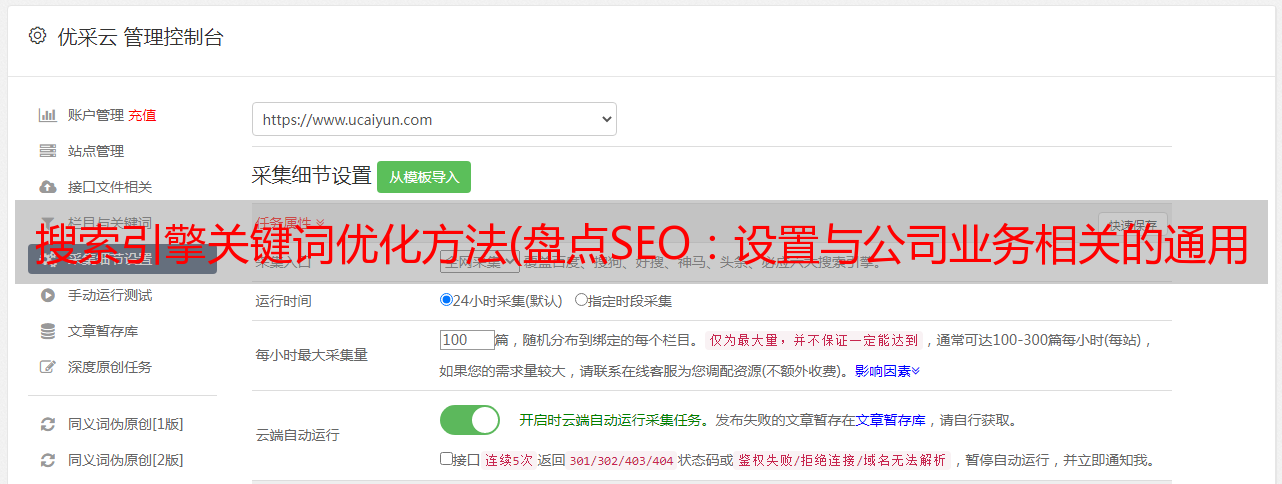 优采云 发布时间: 2022-01-17 04:17搜索引擎关键词优化方法(盘点SEO:设置与公司业务相关的通用关键词。)