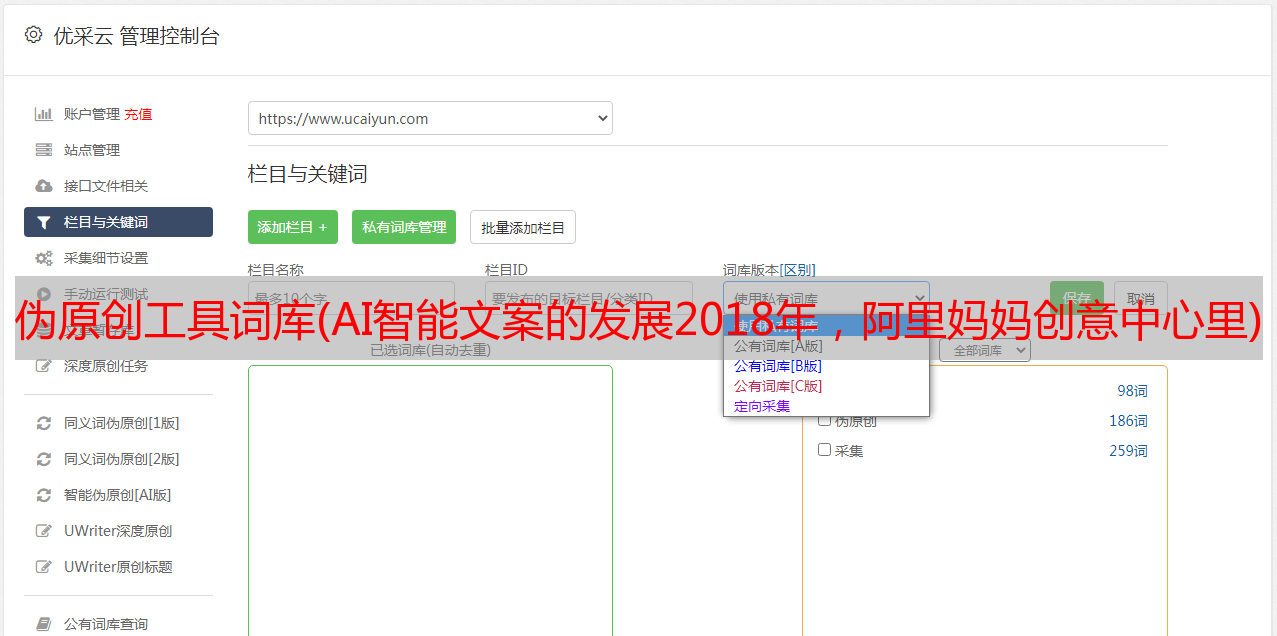 优采云 发布时间: 2022-01-17 09:06伪原创工具词库(AI智能文案的发展2018年,阿里妈妈创意中心里)