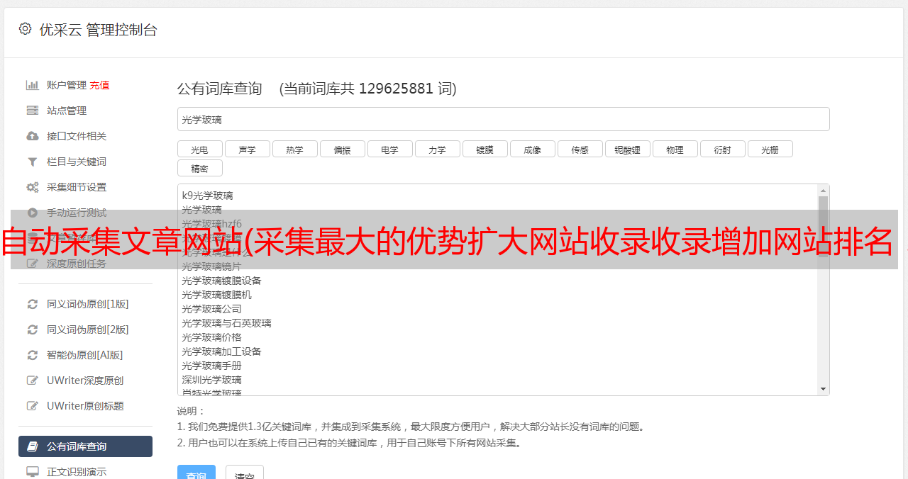 优采云 发布时间: 2022-01-17 09:27自动采集文章网站(采集最大的优势扩大网站收录收录增加网站排名!