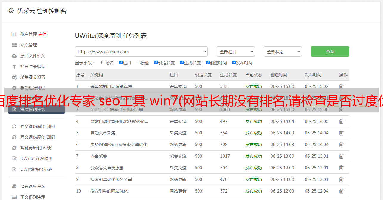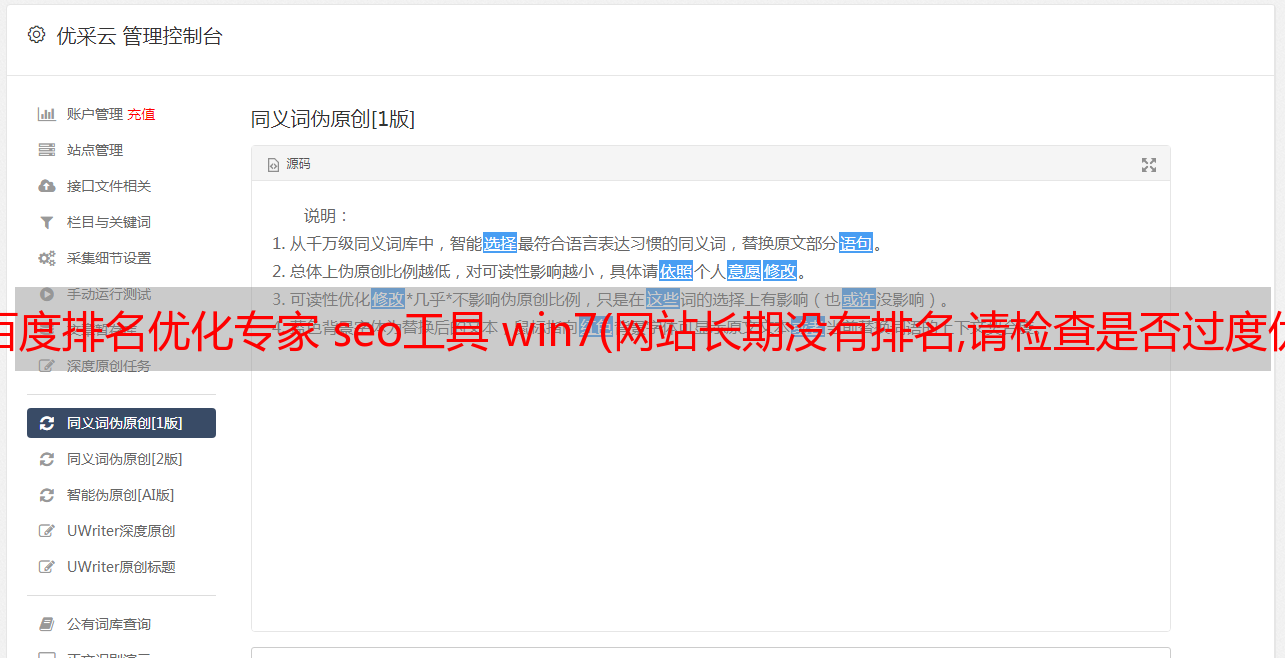 优采云 发布时间: 2022-01-17 17:02百度排名优化专家 seo工具 win7(网站长期没有排名,请检查是否过度优化!(图)