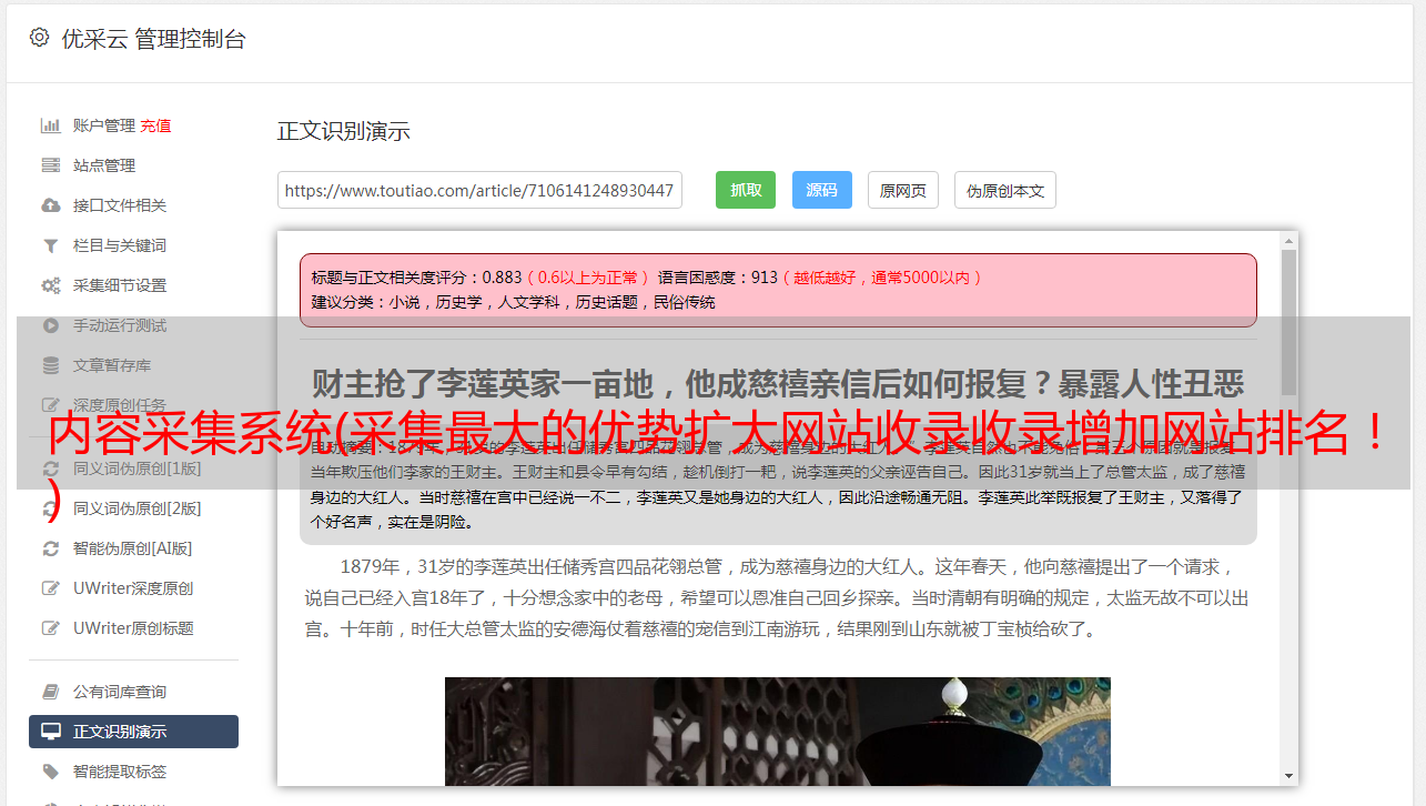 内容采集系统(采集最大的优势扩大网站收录收录增加网站排名! )