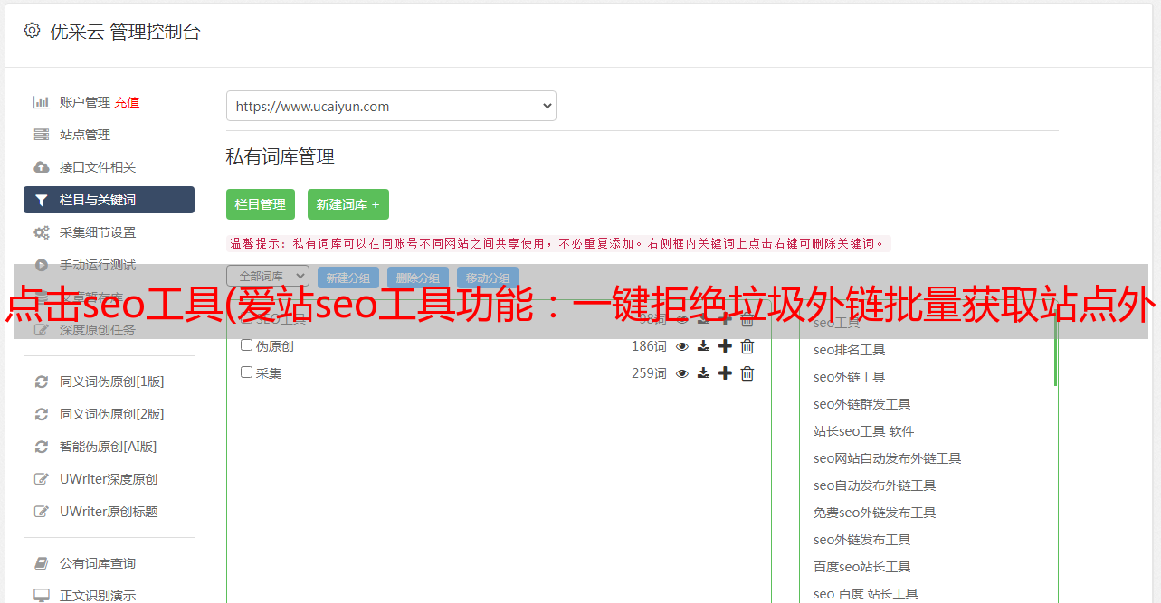 优采云 发布时间: 2022-01-17 21:14点击seo工具(爱站seo工具功能:一键拒绝垃圾外链批量获取站点外链