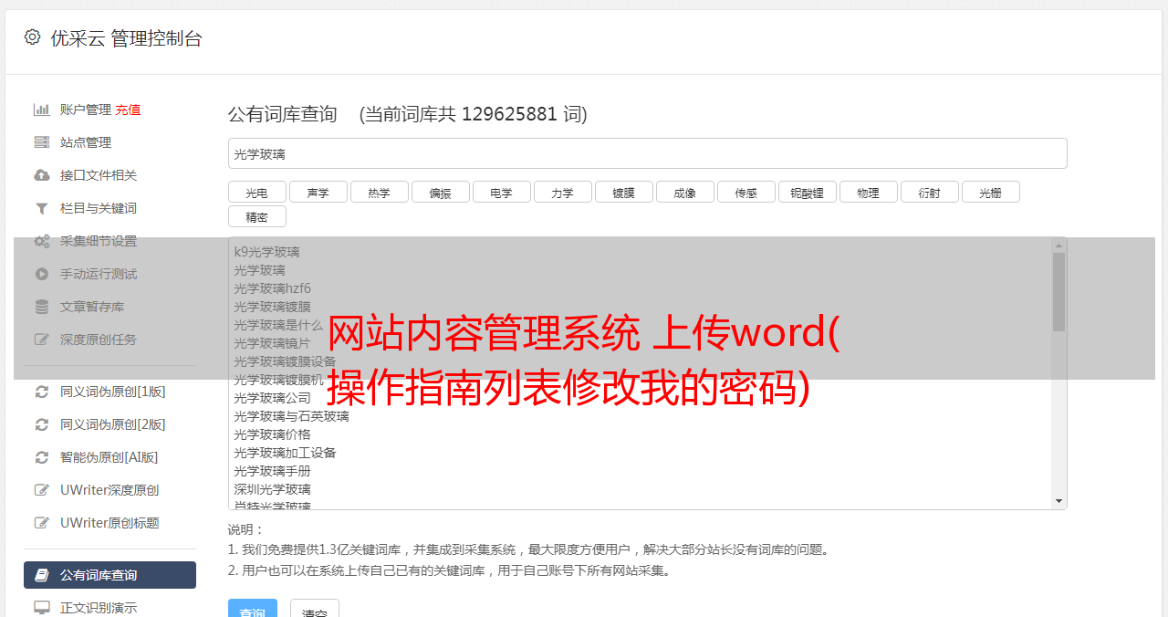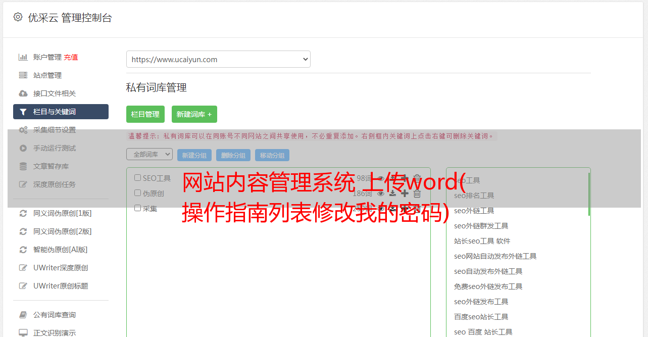 网站内容管理系统 上传word( 操作指南列表修改我的密码)