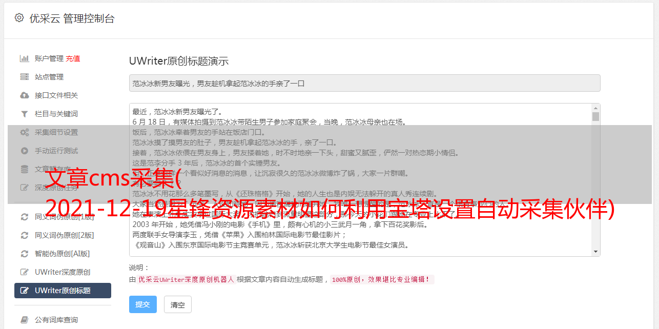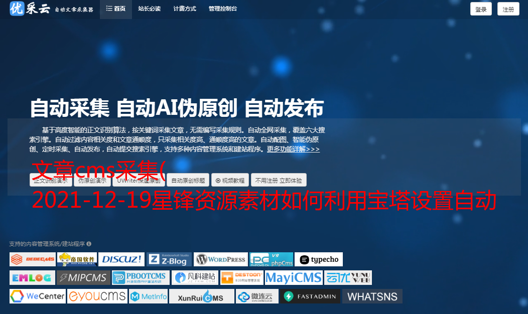 文章cms采集( 2021-12-19星锋资源素材如何利用宝塔设置自动采集伙伴)