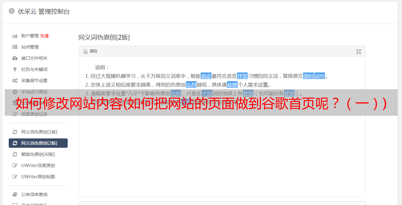 优采云 发布时间: 2022-01-18 03:10如何修改网站内容(如何把网站的页面做到谷歌首页呢?(一))