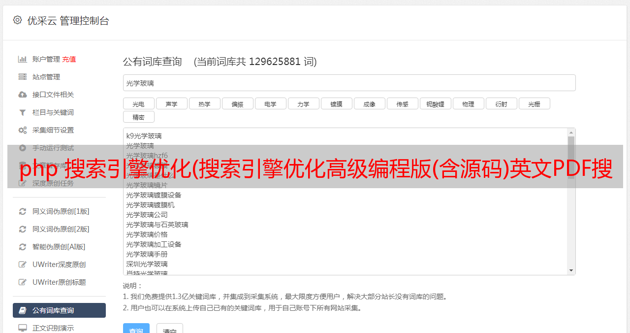 优采云 发布时间: 2022-01-18 03:17php 搜索引擎优化(搜索引擎优化高级编程版(含源码)英文PDF搜索引擎客服)