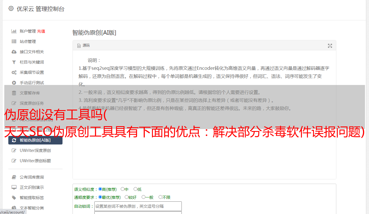 伪原创没有工具吗( 天天SEO伪原创工具具有下面的优点:解决部分杀毒软件误报问题)