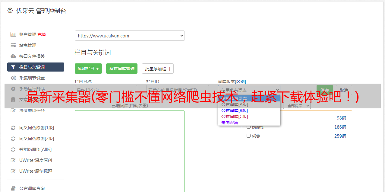 优采云采集器免费最新版是一个绿色安全的信息采集软件,内存占用少。 优采云采集器具有零门槛、多引擎、*敏*感*词*的特点,可以让不懂爬虫技术的人轻松采集网络信息,可以可谓功能强大,功能齐全,界面简洁明了,操作简单易上手,感兴趣的朋友下载吧!