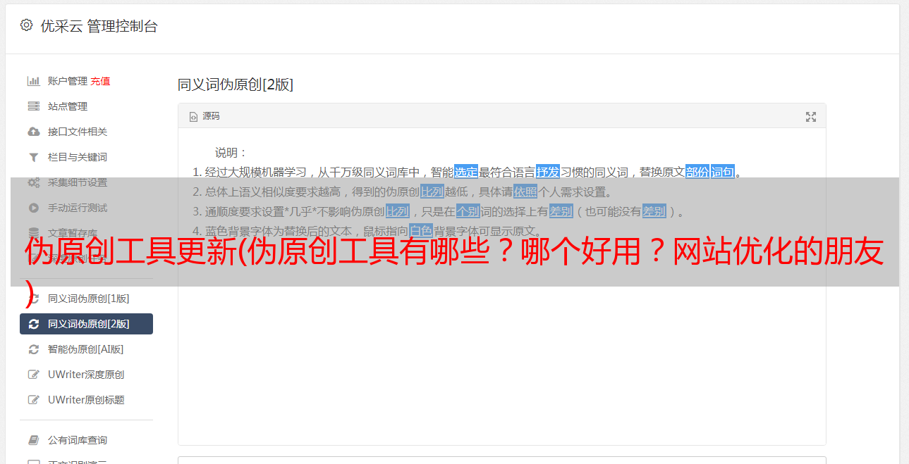 优采云 发布时间: 2022-01-18 08:16伪原创工具更新(伪原创工具有哪些?哪个好用?网站优化的朋友