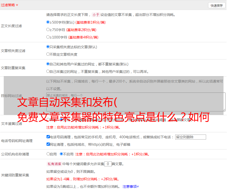 免费文章采集器特点: