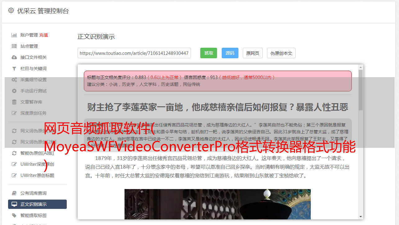 网页音频抓取软件( MoyeaSWFVideoConverterPro格式转换器格式功能 )