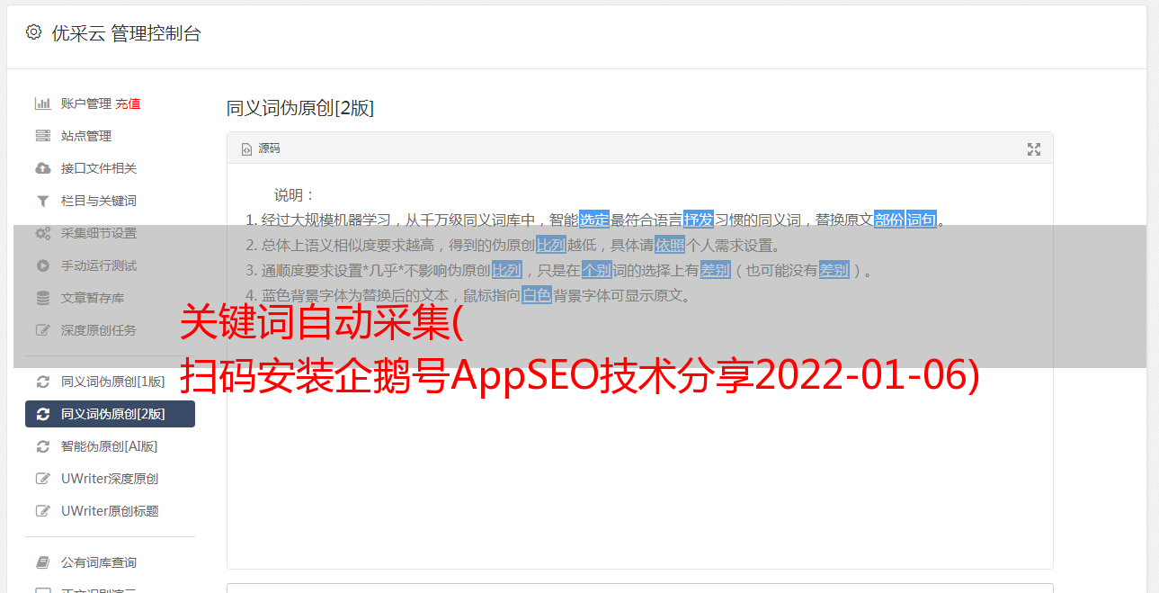 关键词自动采集( 扫码安装企鹅号AppSEO技术分享2022-01-06)