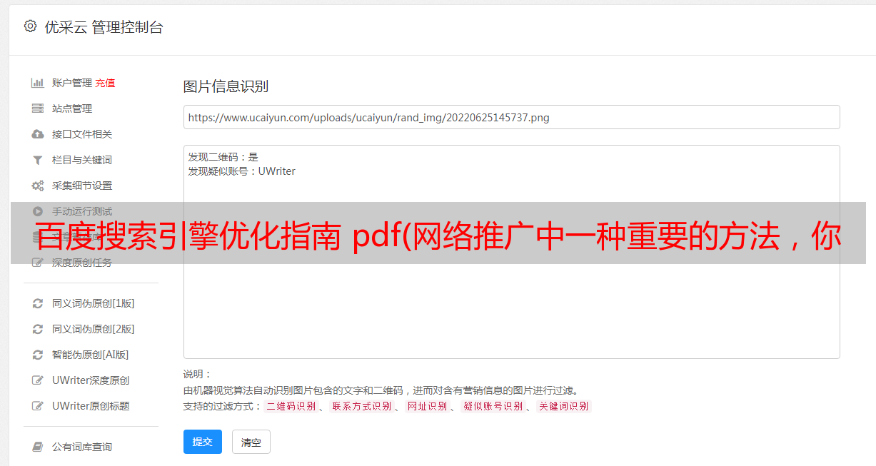 网站内容优化:改进原创内容,减少对其他网站内容的采集。网站中的内容的作用是让用户根据自己的产品去掌握,或者要求,让根据百度搜索引擎到达网站的用户掌握产品。改善用户体验。