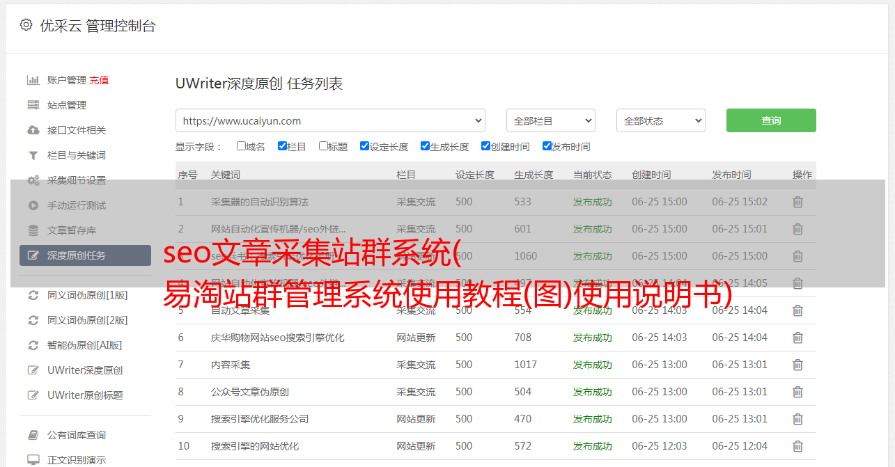 seo文章采集站群系统( 易淘站群管理系统使用教程(图)使用说明书)