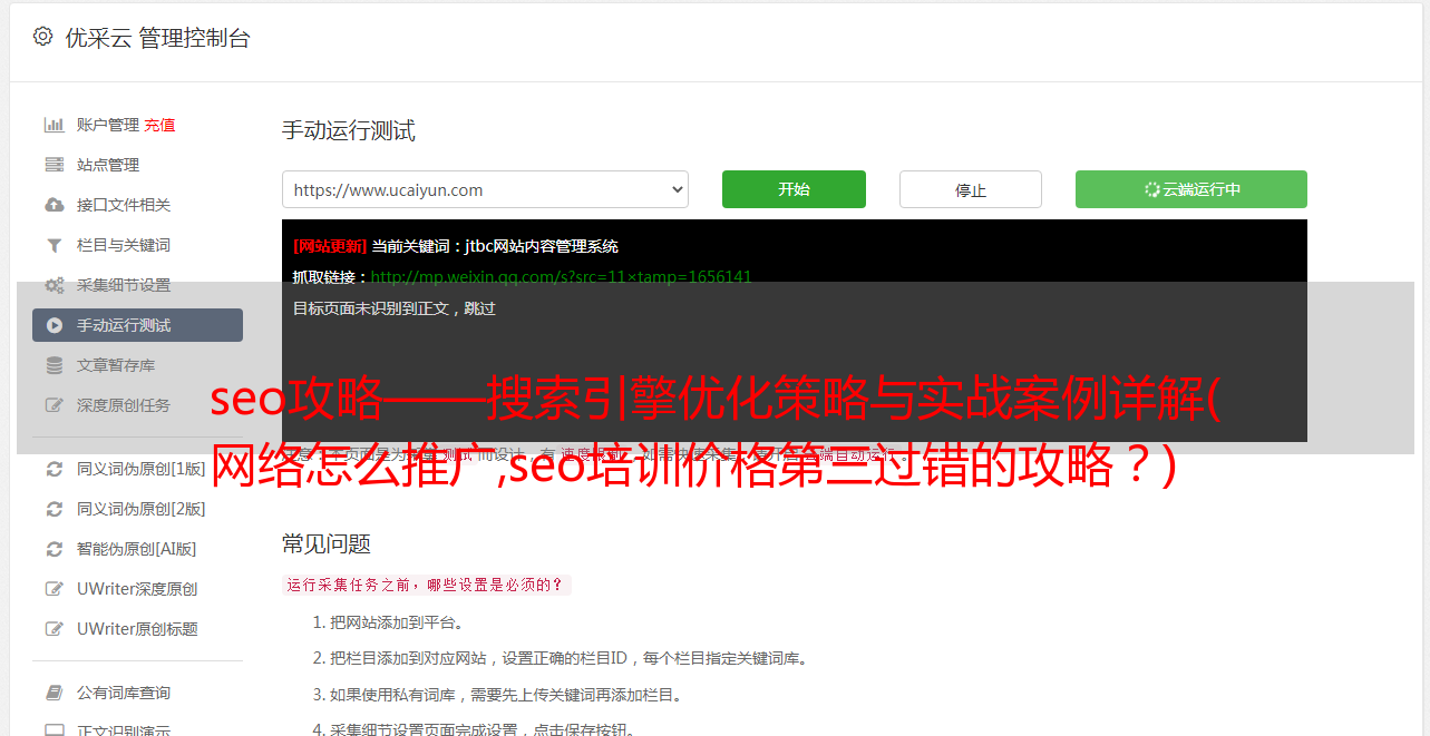 优采云 发布时间: 2022-01-18 18:04seo攻略——搜索引擎优化策略与实战案例详解(