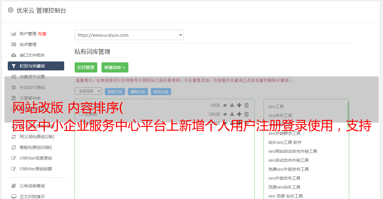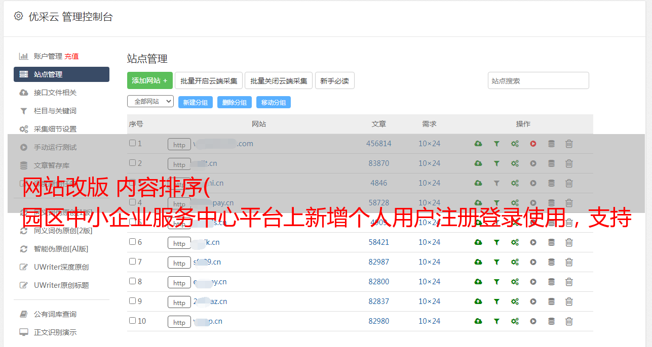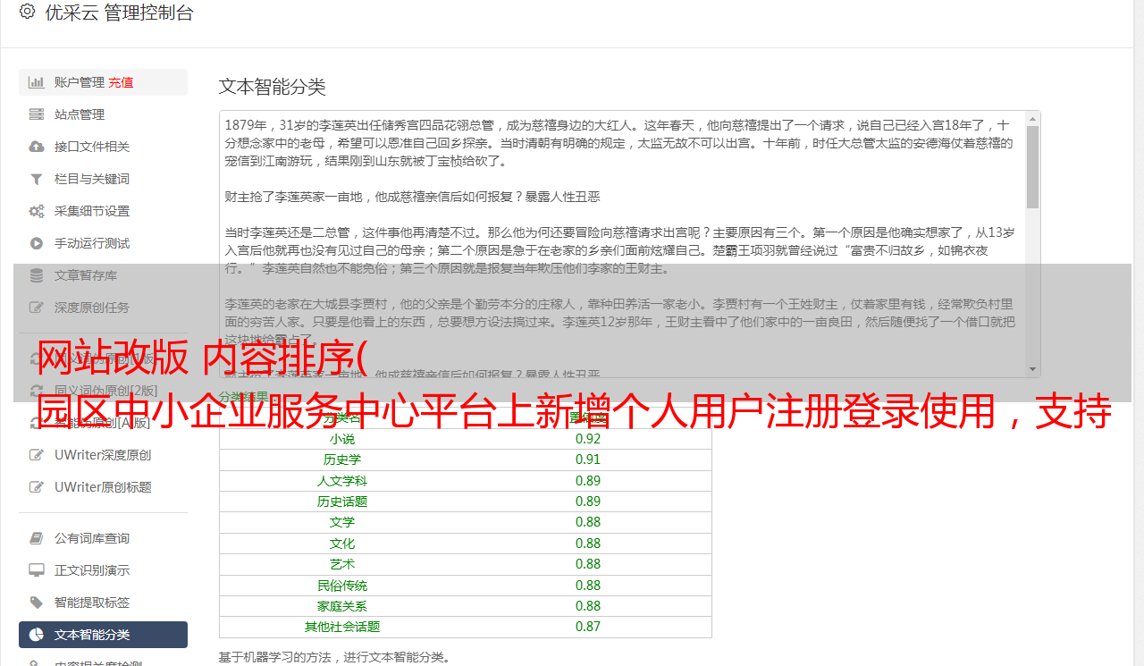 网站改版 内容排序( 园区中小企业服务中心平台上新增个人用户注册登录使用,支持官网和微信端 )