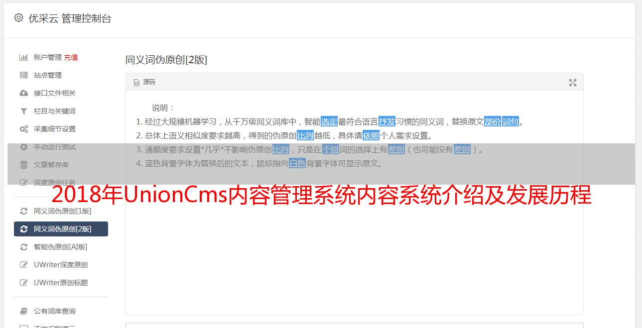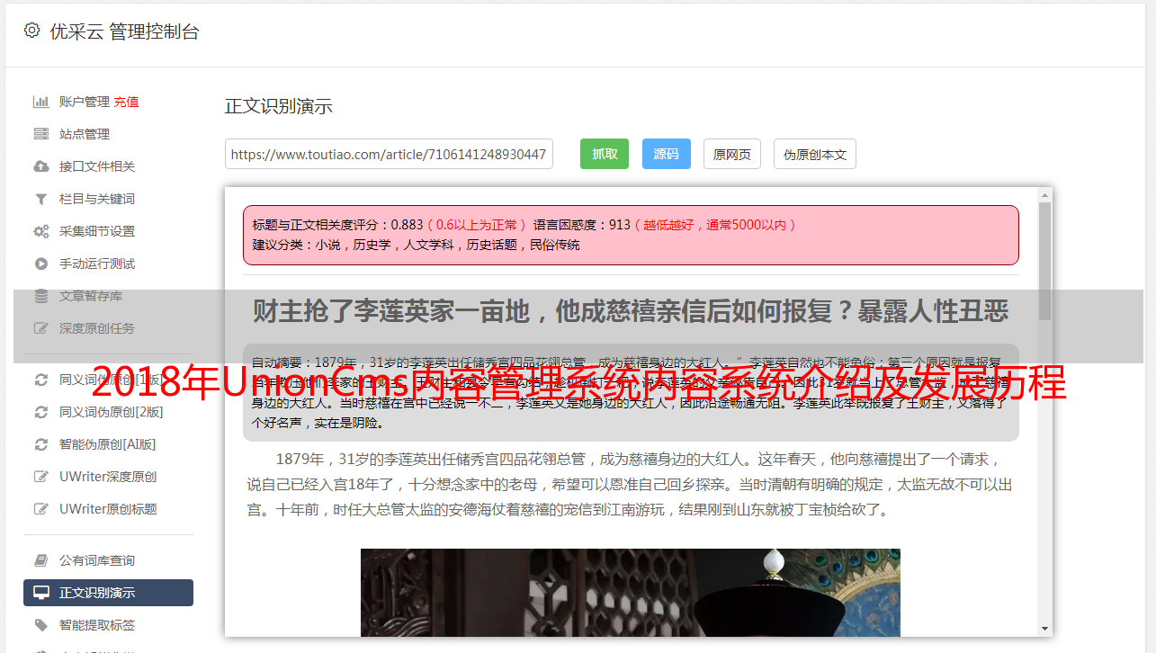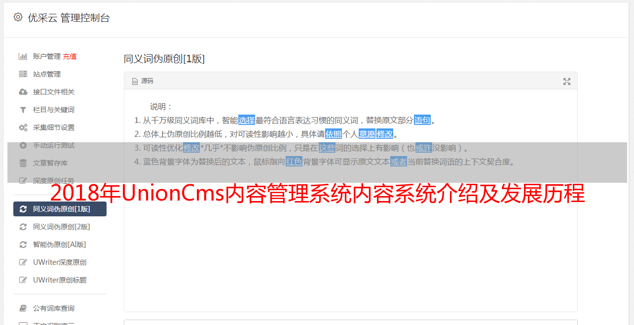 2018年UnionCms内容管理系统内容系统介绍及发展历程