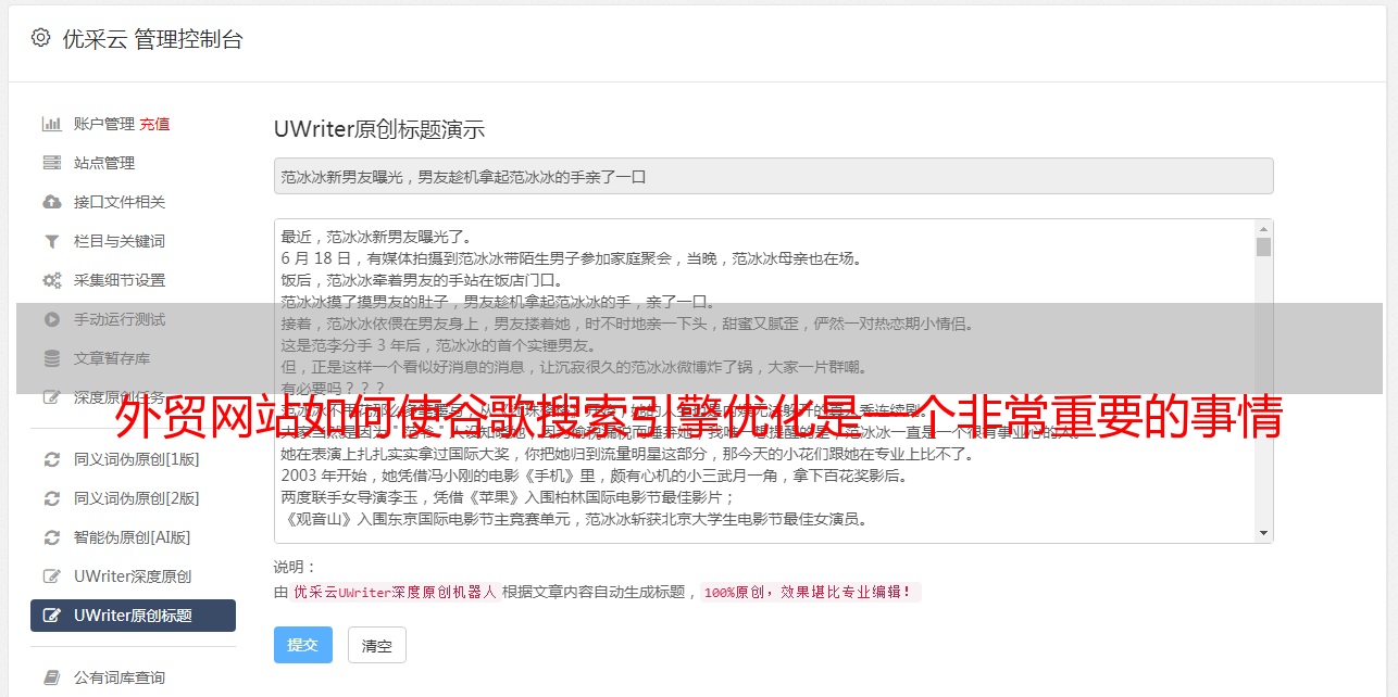 5。定期更新网站的内容。还记得伪原创吗?这是为了丰富网站的内容,以使搜索引擎不会收录它。同样,Google一方面会判断内容的权重,因此用于分配和填充内容模块的内容将丰富网站],有助于优化。