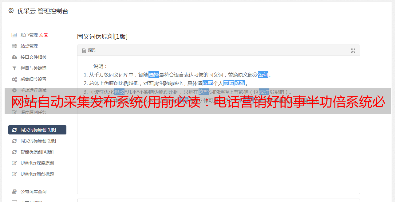 优采云 发布时间: 2022-01-19 01:19网站自动采集发布系统(用前必读:电话营销好的事半功倍系统必然带来事半功倍的效果)