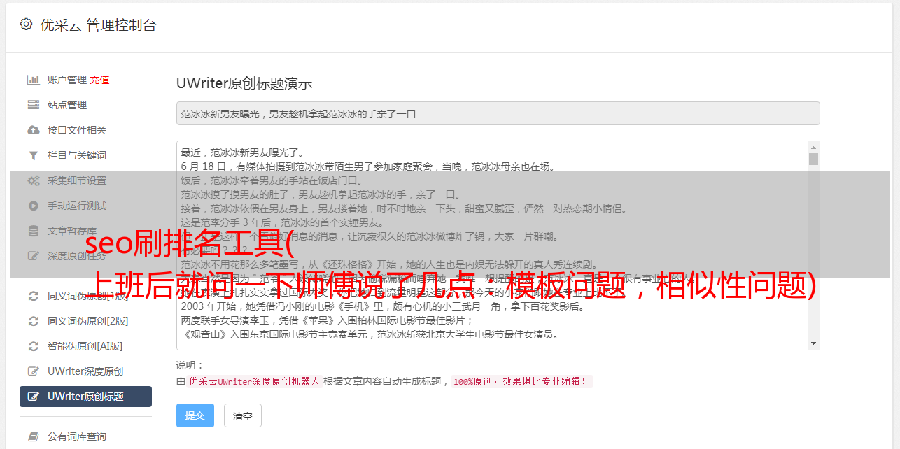 seo刷排名工具( 上班后就问一下师傅说了几点:模板问题,相似性问题)