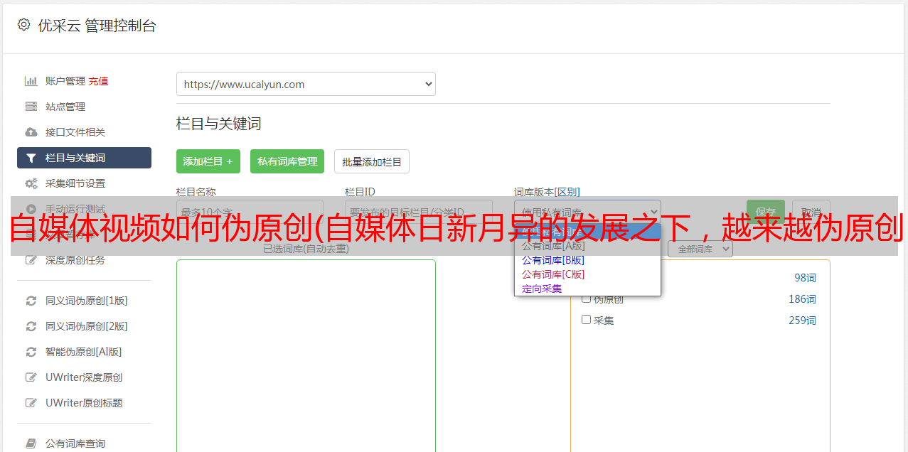 首先,视频处理,处理视频伪原创采集处理短视频的时候需要注意。网红视频和同平台视频无法处理,容易违规。首先你需要一个合适的采集软件,你可以采集高清无水印视频,然后采集好的视频必须去重伪原创 ,软件视频未经修改,直接传输,容易被平台判断为非法。当然在做短视频处理的时候不可能对每一个视频都精雕细琢,所以我们要选择一款功能强大的视频处理工具进行去重伪原创处理,这个工具是给初学者的自媒体是一个必须,