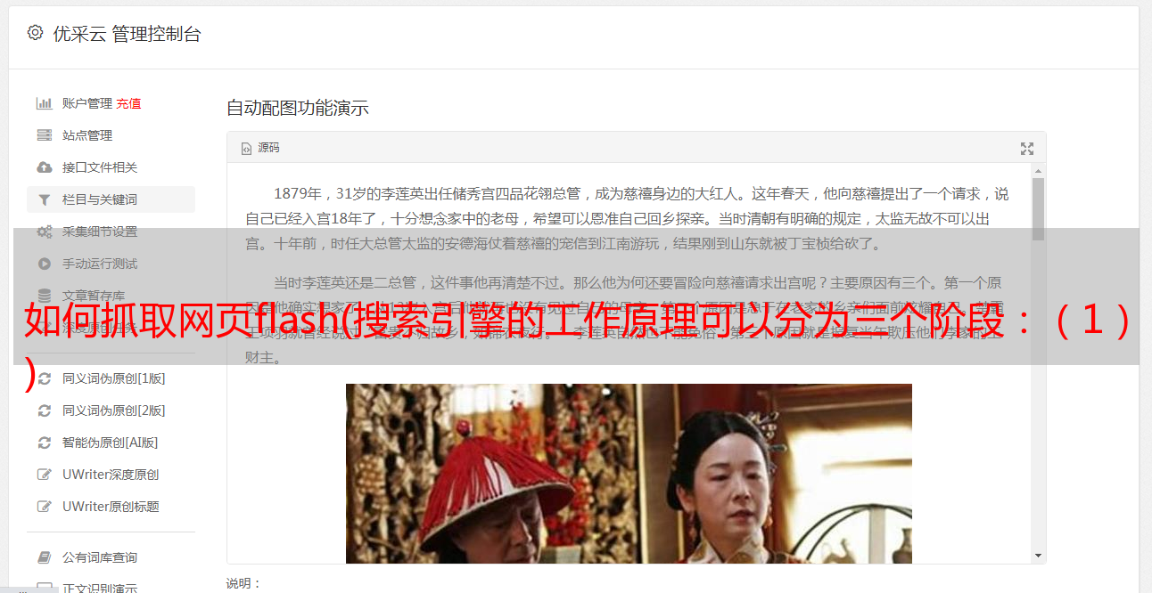 优采云 发布时间: 2022-01-19 07:06如何抓取网页flash(搜索引擎的工作原理可以分为三个阶段:(1)