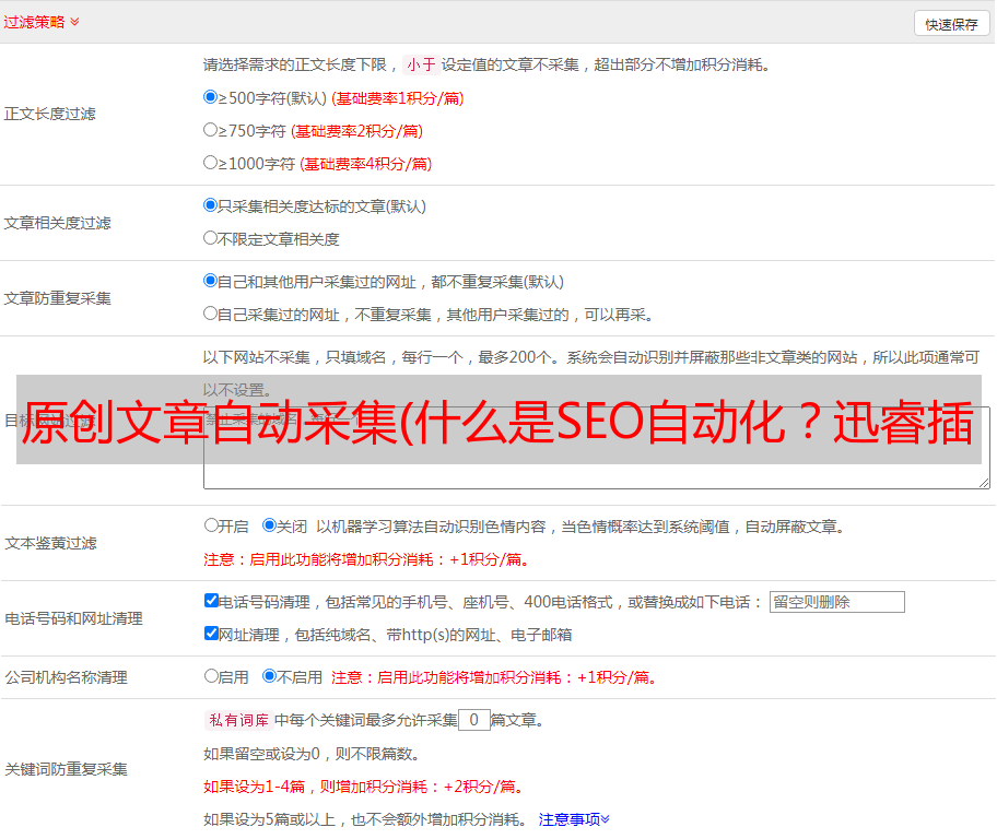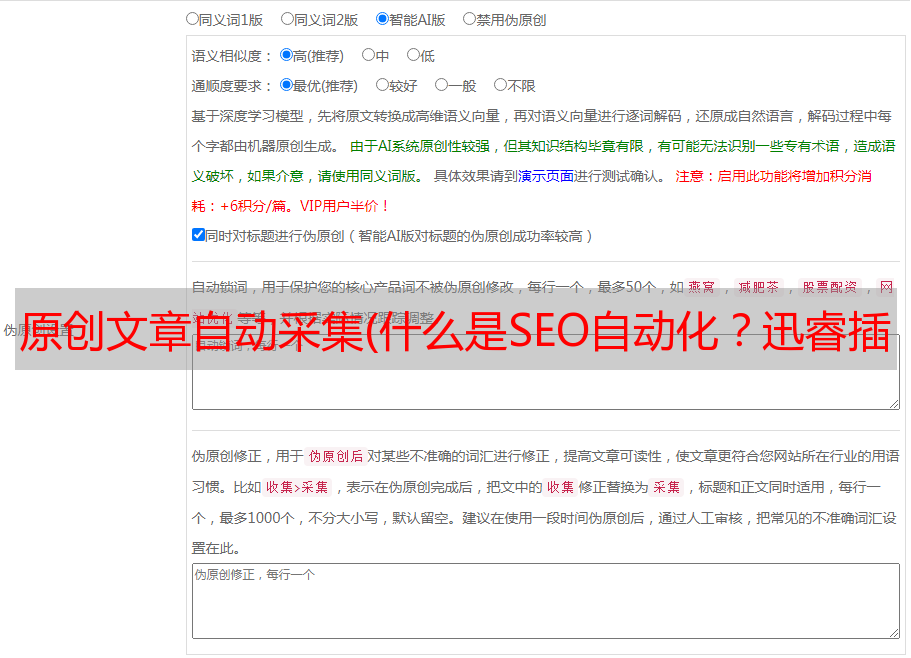 4、伪原创保留字(当文章原创未被伪原创使用时设置核心字)