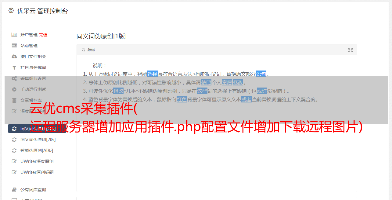 云优cms采集插件( 远程服务器增加应用插件.php配置文件增加下载远程图片)