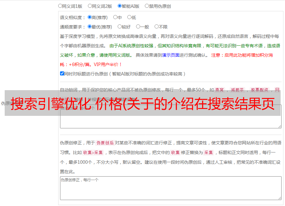 搜索引擎优化 价格(关于的介绍在搜索结果页面中)