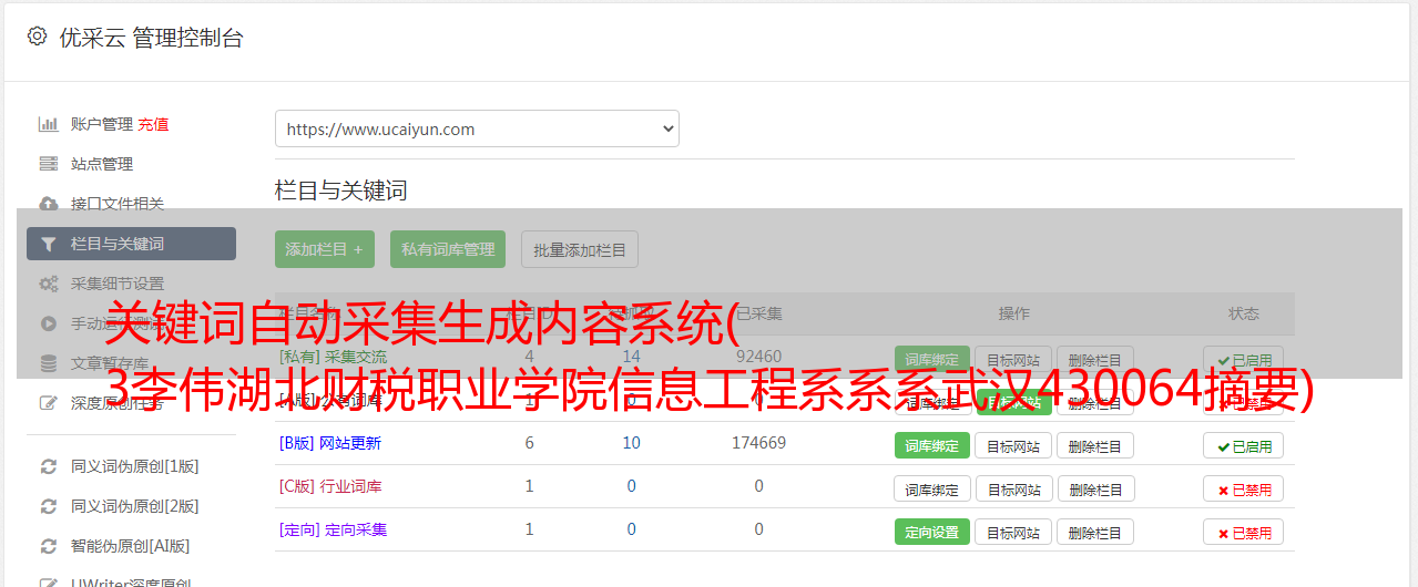 关键词自动采集生成内容系统( 3李伟湖北财税职业学院信息工程系系系武汉430064摘要)