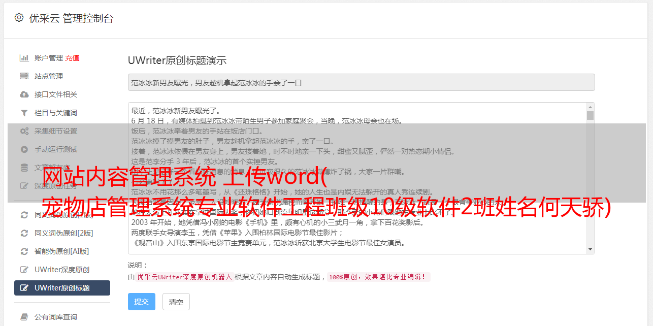 网站内容管理系统 上传word( 宠物店管理系统专业软件工程班级10级软件2班姓名何天骄)