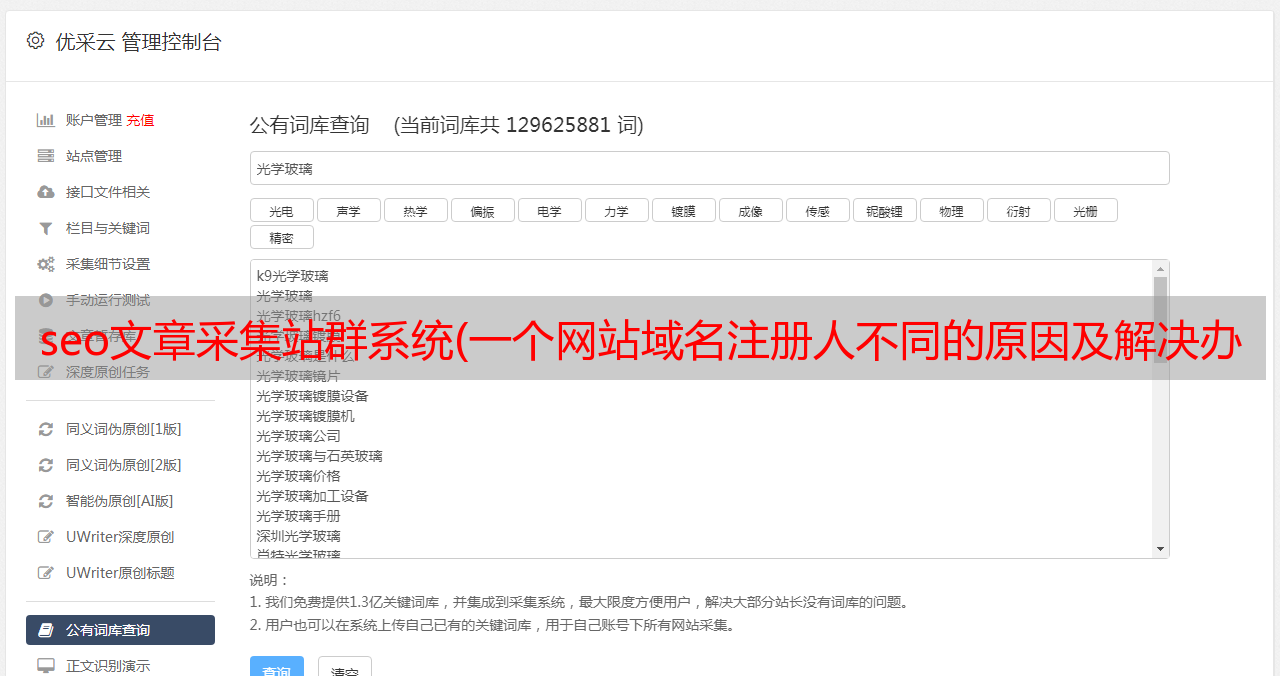 优采云 发布时间: 2022-01-20 08:01seo文章采集站群系统(一个网站域名注册人不同的原因及解决办法)