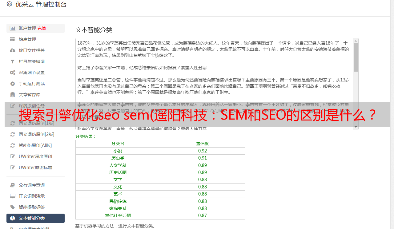 优采云 发布时间: 2022-01-20 10:05搜索引擎优化seo sem(遥阳科技:SEM和SEO的区别是什么?哪个效果更好?)
