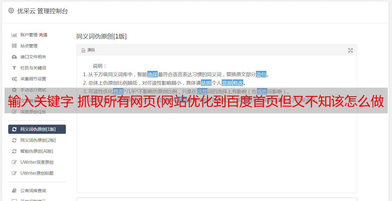 优采云 发布时间: 2022-01-20 14:10输入关键字 抓取所有网页(网站优化到百度首页但又不知该怎么做??)