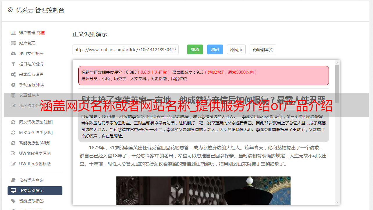 优采云 发布时间: 2021-04-27 00:05涵盖网页名称或者网站名称_提供服务介绍or产品介绍