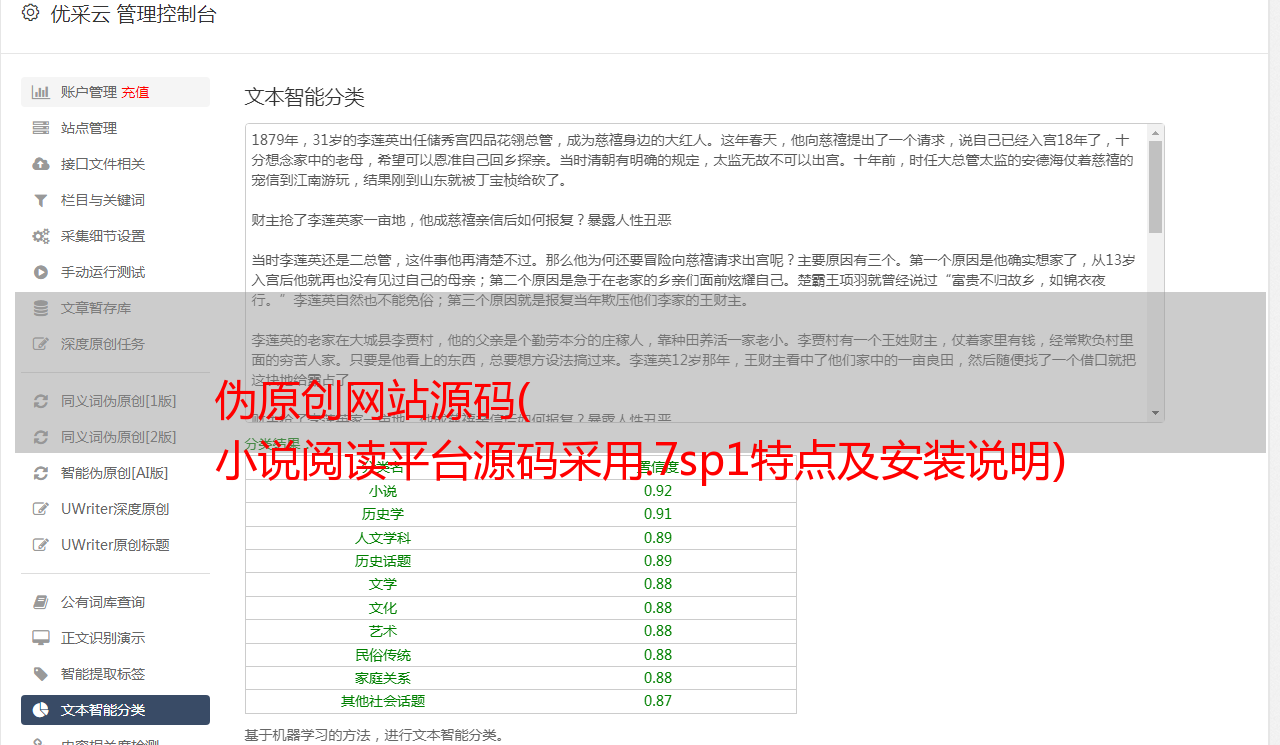 伪原创网站源码( 小说阅读平台源码采用.7sp1特点及安装说明)